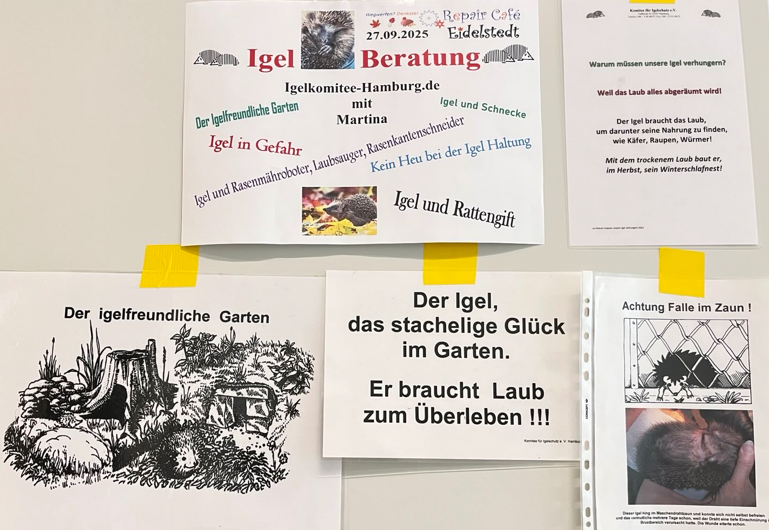 Nur drei Tage bevor das Repaircafe Eidelstedt.de am 27.9.2025 wieder seine Tür für die Bürger des Stadtteils öffnete, wurde offiziell bekannt gegeben, dass eine Igelberatung durch Martina stattfindet.